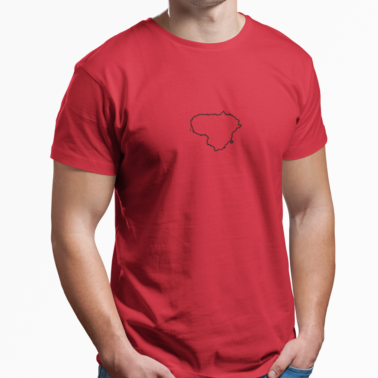 Raudoni unisex marškinėliai "Lietuvos kontūrai"