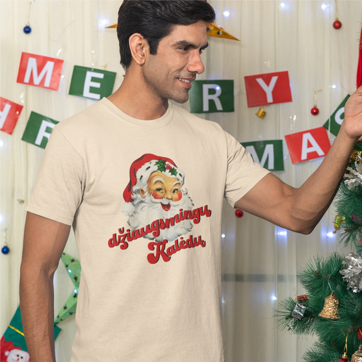 Smėliniai unisex marškinėliai "Vintage Kalėdų senelis"