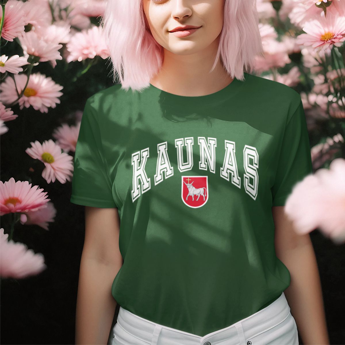 Tamsiai žali UNISEX marškinėliai "Kaunas su herbu"