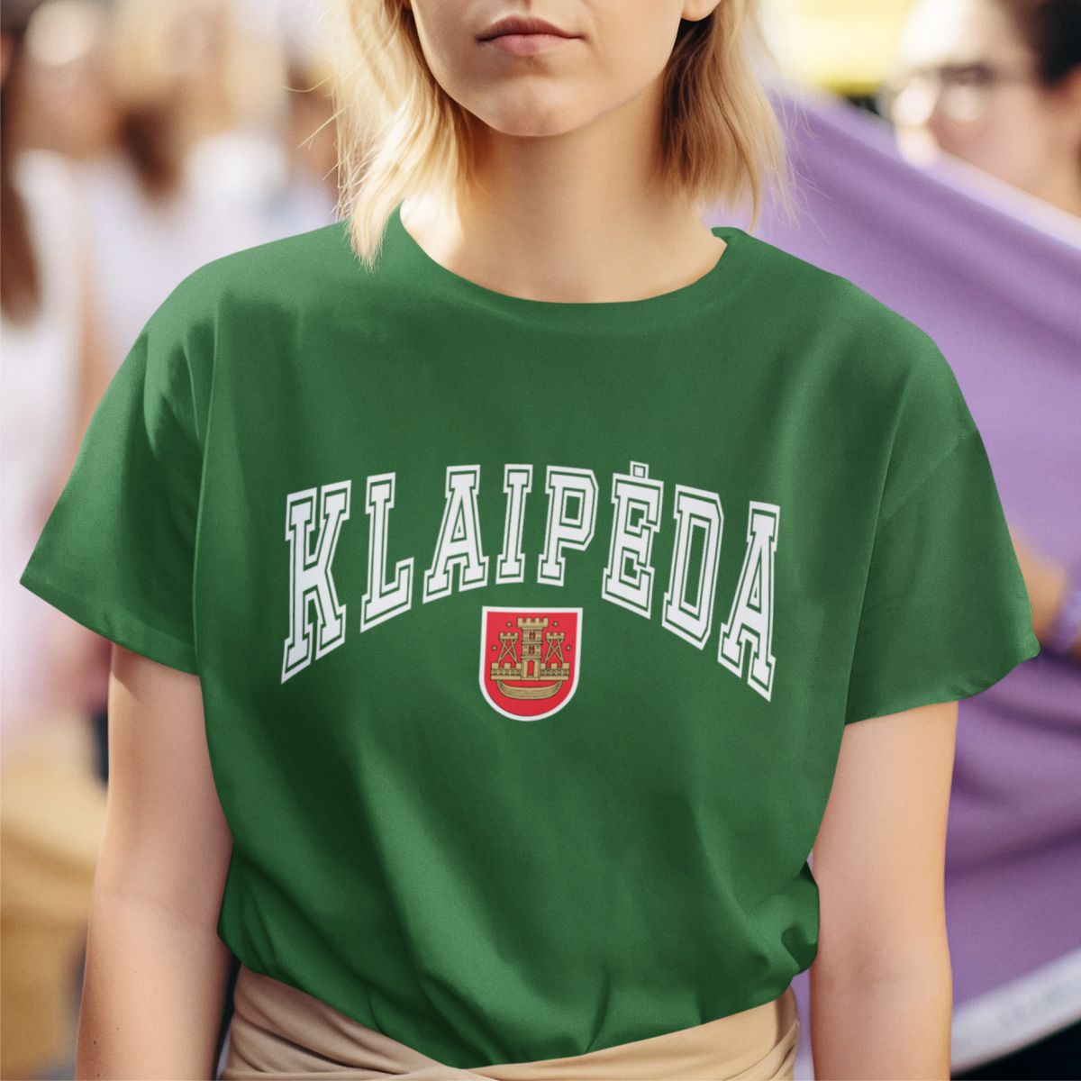 Tamsiai žali UNISEX marškinėliai "Klaipėda su herbu“