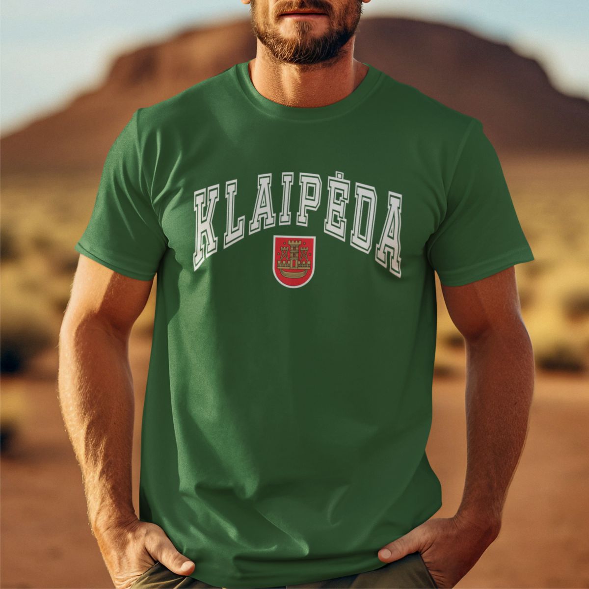 Tamsiai žali UNISEX marškinėliai "Klaipėda su herbu"
