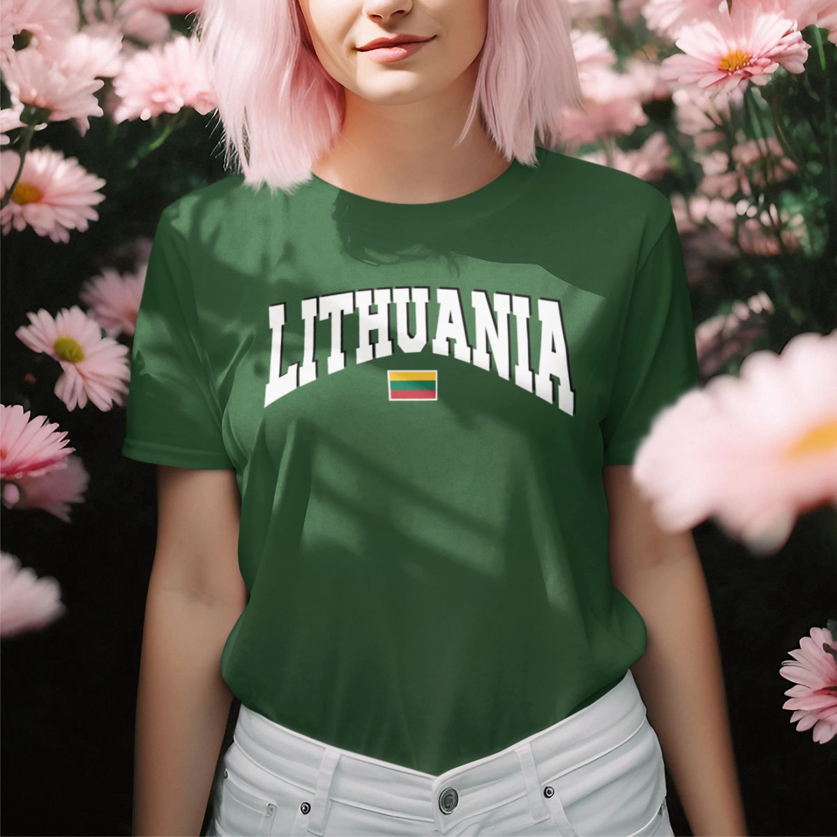 Tamsiai žali UNISEX marškinėliai "Lithuania with flag“