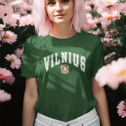 Tamsiai žali UNISEX marškinėliai "Vilnius su herbu"