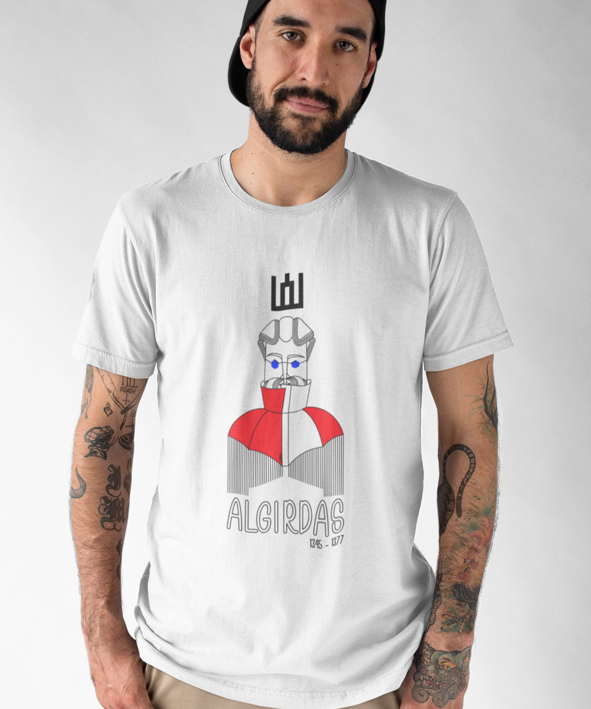 Balti UNISEX marškinėliai "LDK KUNIGAIKŠTIS ALGIRDAS SU UŽRAŠU"