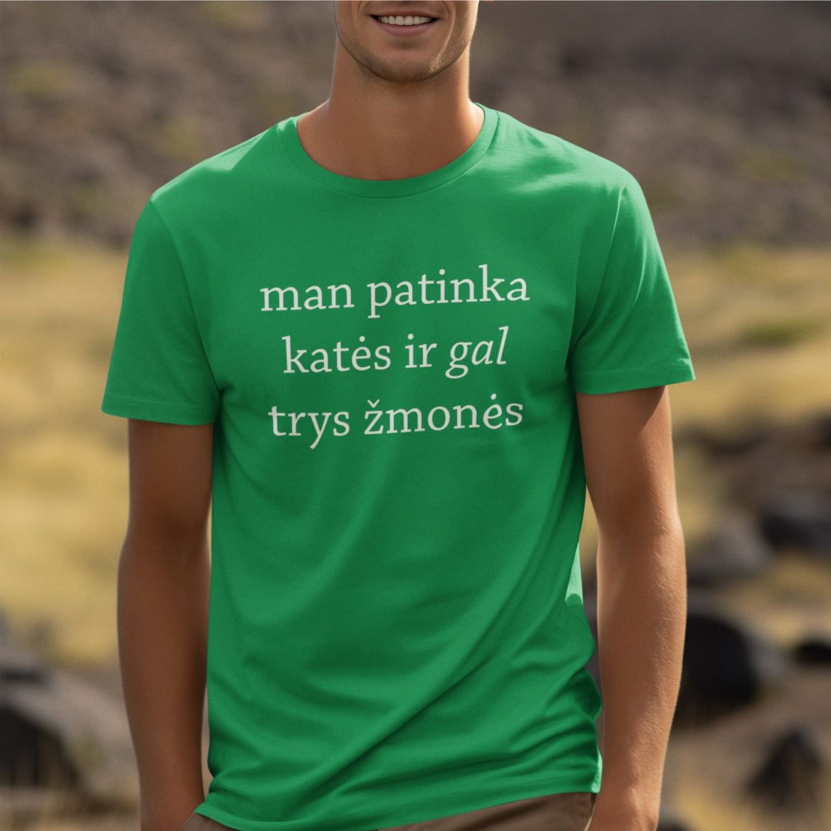 Žali UNISEX marškinėliai "Man patinka katės“ Pagaminta prekė (M dydis)