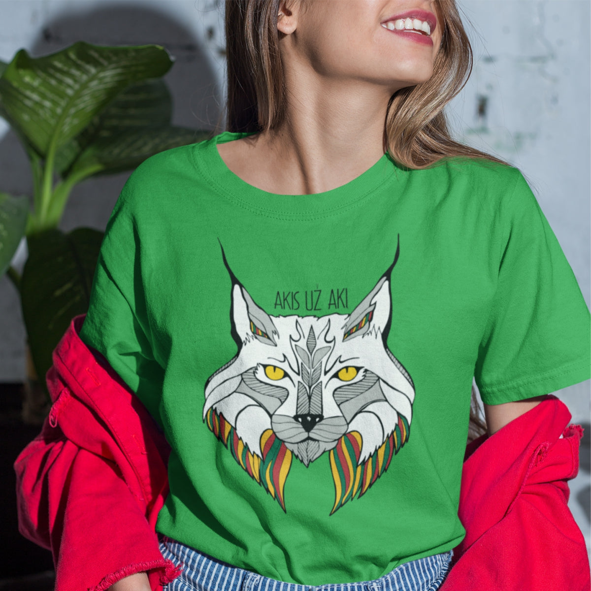 Žali marškinėliai UNISEX "Spalvota lūšis"