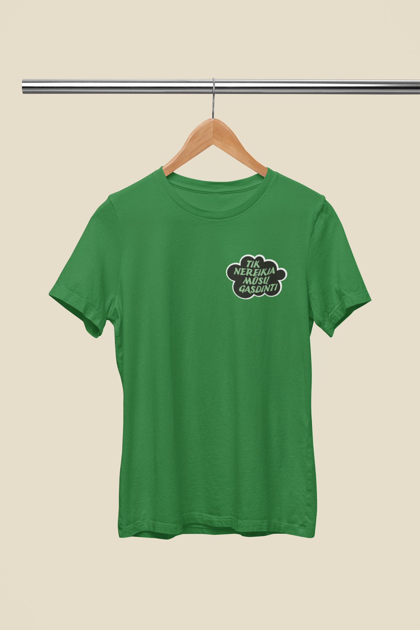 Žali UNISEX marškinėliai su spauda širdies plote "Tik nereikia mūsų gąsdinti"