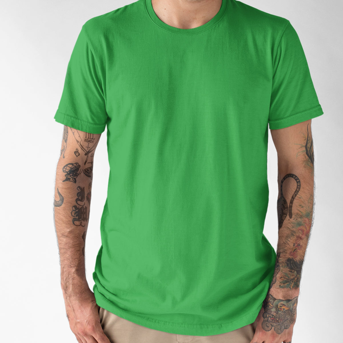 Žali UNISEX medvilniniai marškinėliai be spaudos
