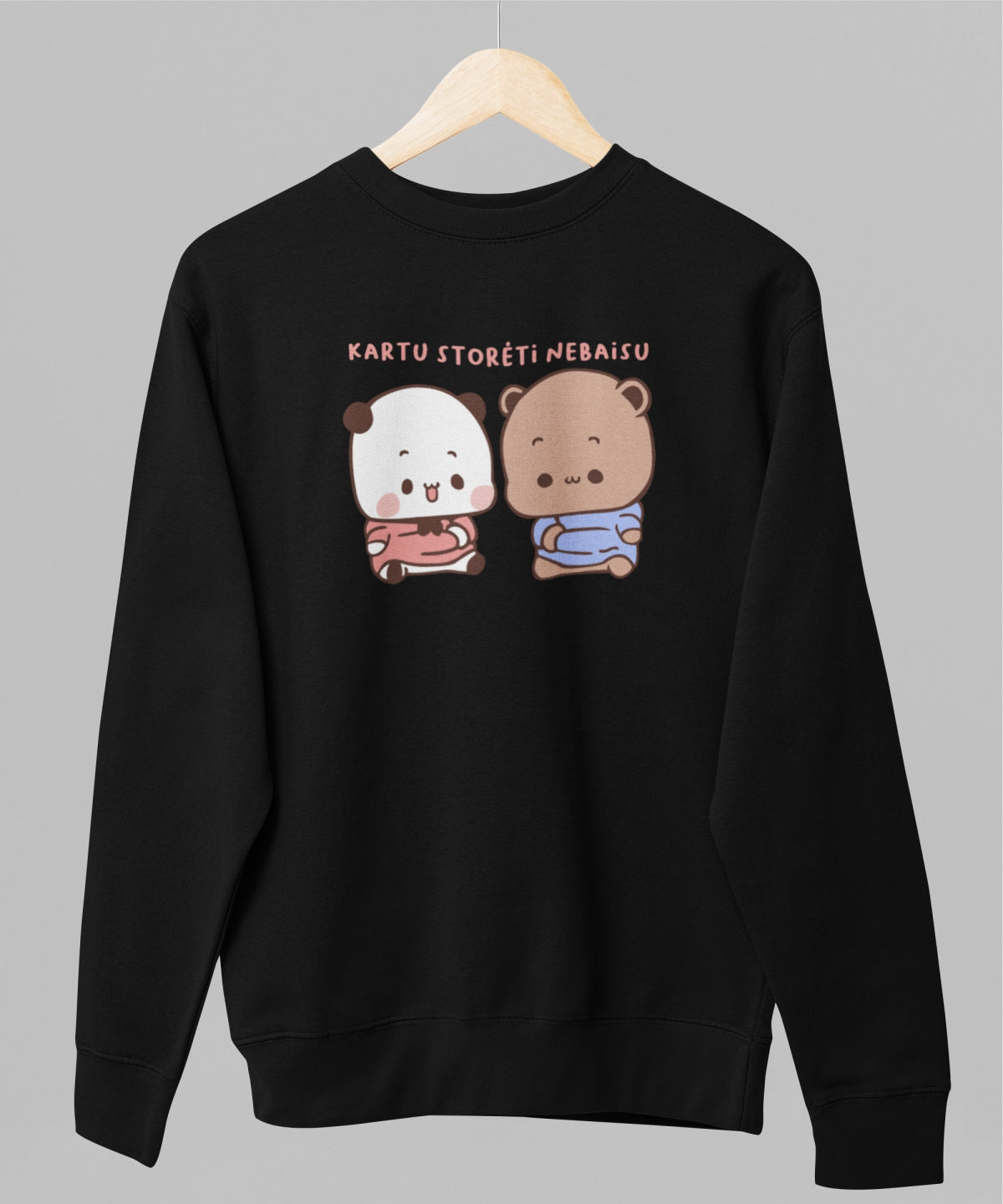 Juodas džemperis be gobtuvo "Kartu storėti nebaisu"