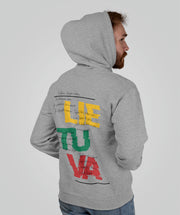 Pilkas džemperis su gobtuvu ir spauda ant nugaros "Lietuva, Tėvyne mūsų“