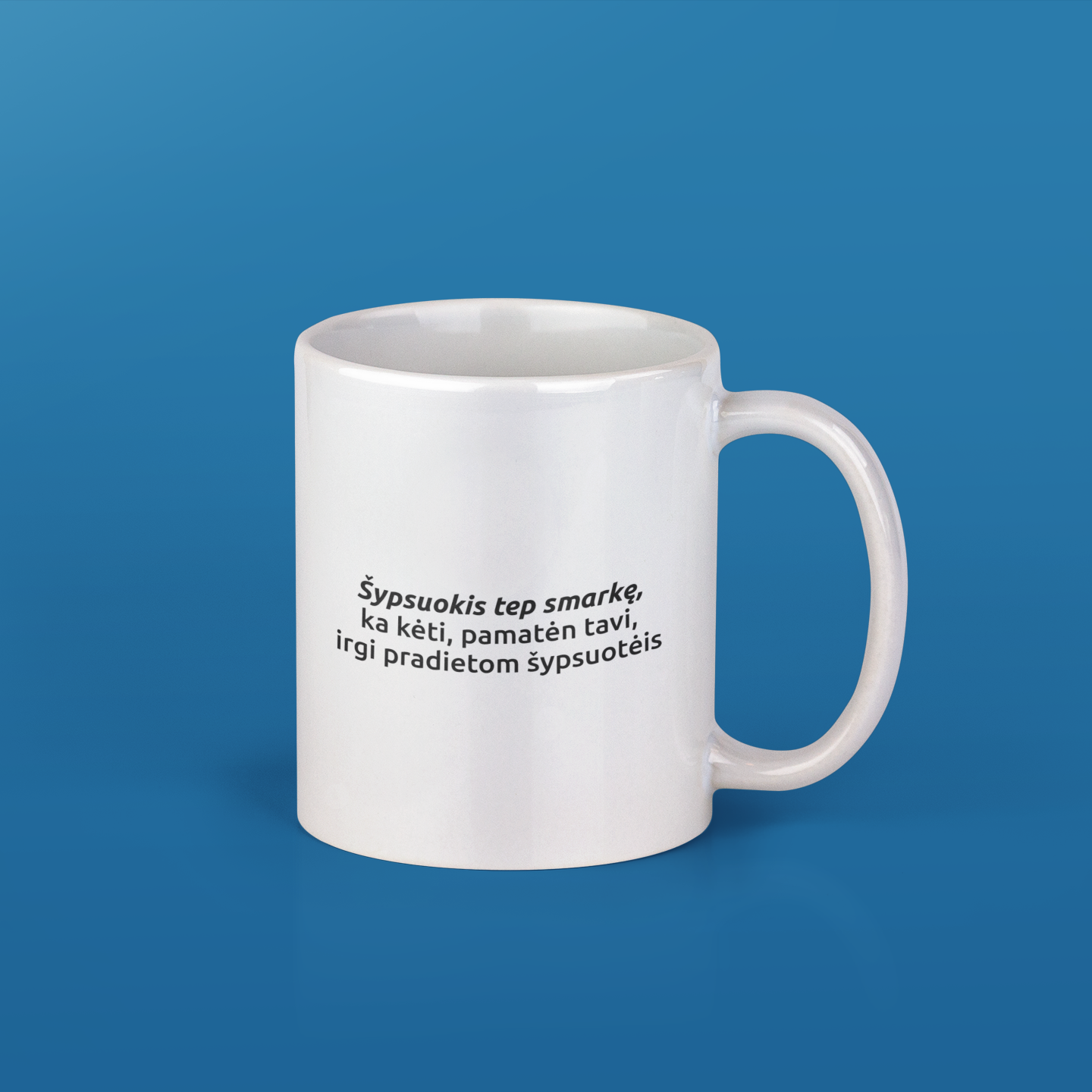 Puodelis su spauda "Šypsuokis"