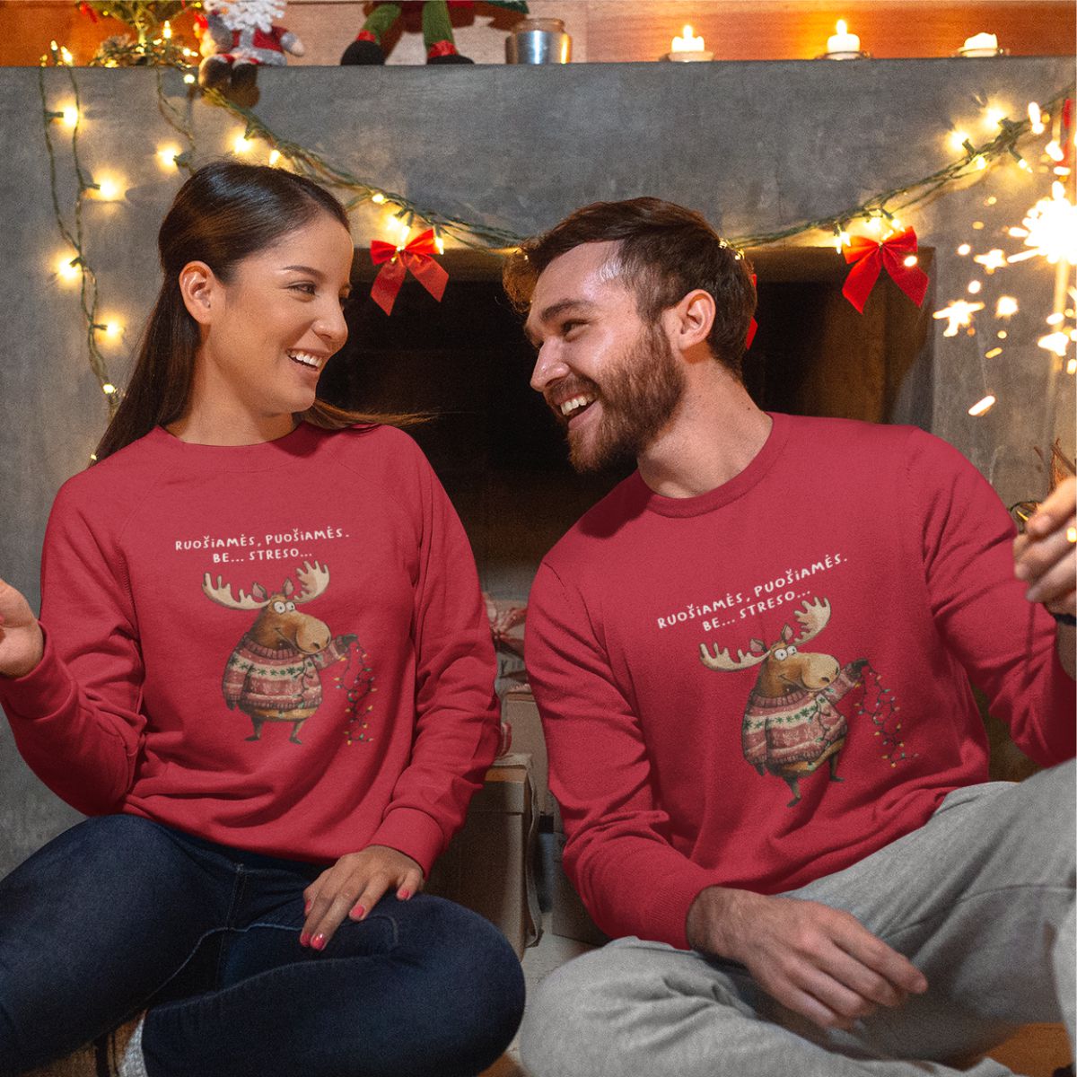 Raudoni džemperiai be gobtuvų poroms „Be streso“