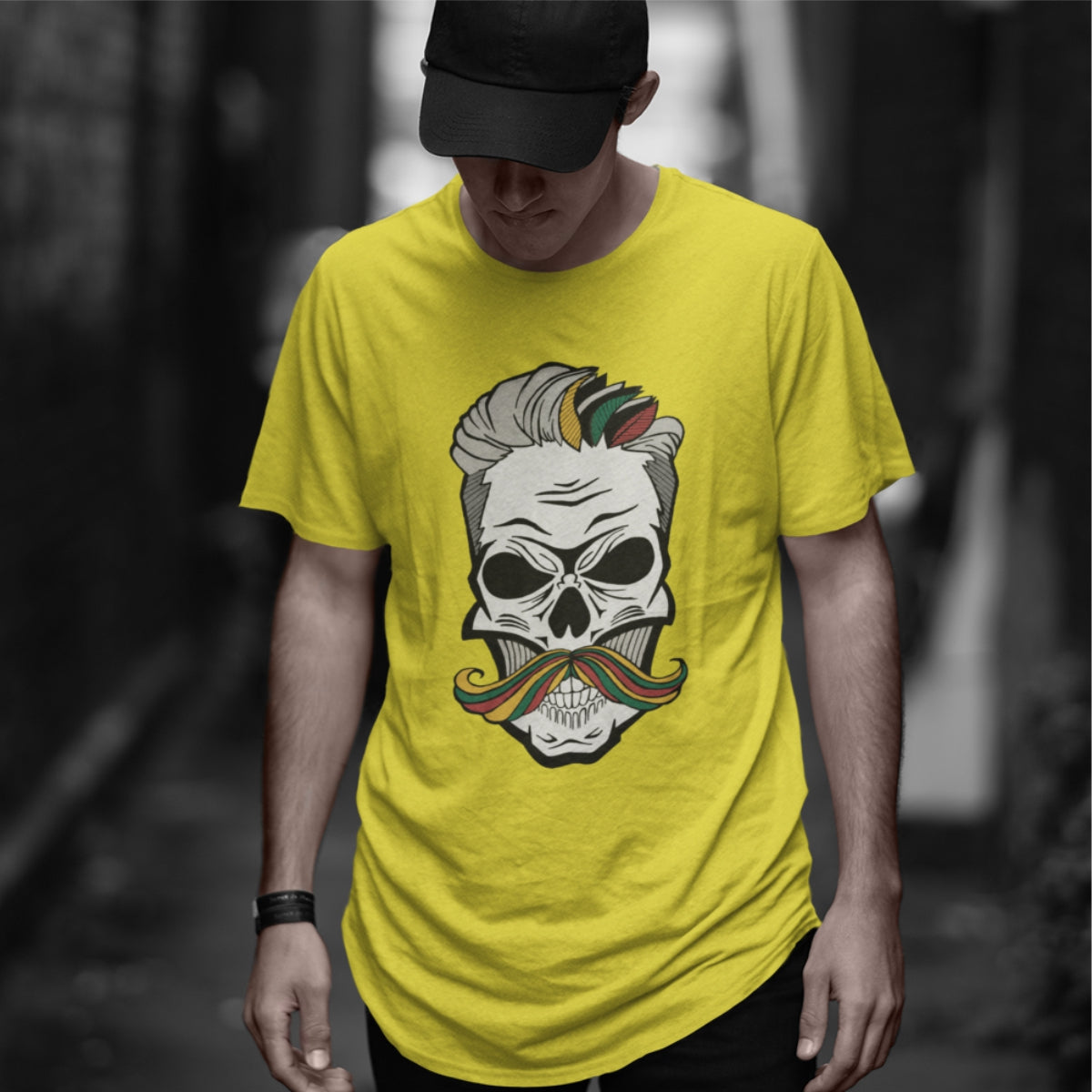 Geltoni UNISEX marškinėliai "Spalvoti ūsai“