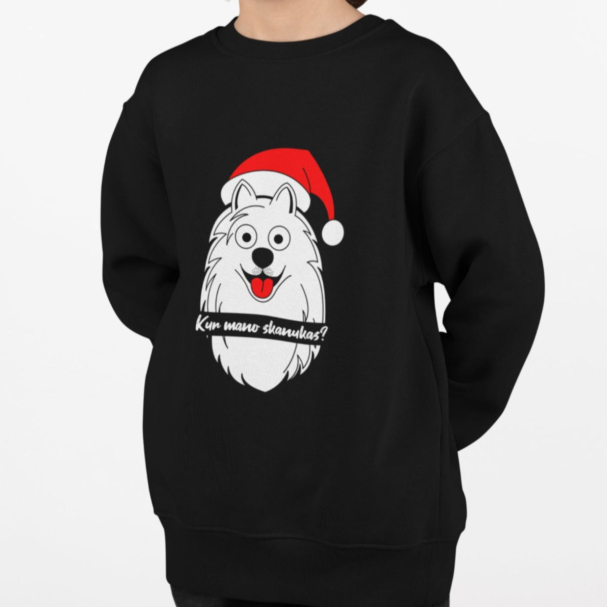 Vaikiškas juodas kalėdinis džemperis "Kur mano skanukas"