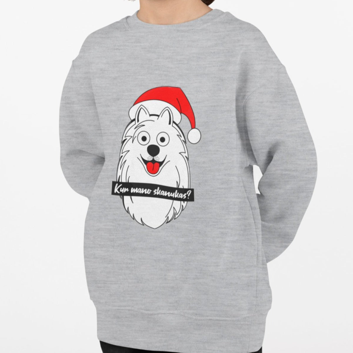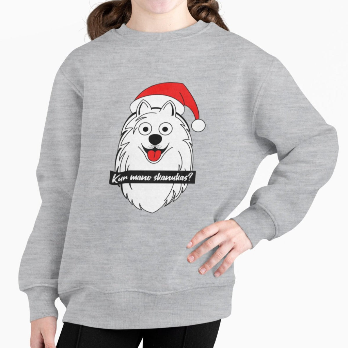 Vaikiškas pilkas melanžinis kalėdinis džemperis "Kur mano skanukas"