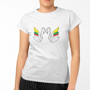 Balti moteriški marškinėliai "Geometrinės gulbės"