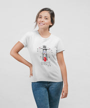 Balti moteriški marškinėliai "LDK KUNIGAIKŠTIENĖ BIRUTĖ SU UŽRAŠU"