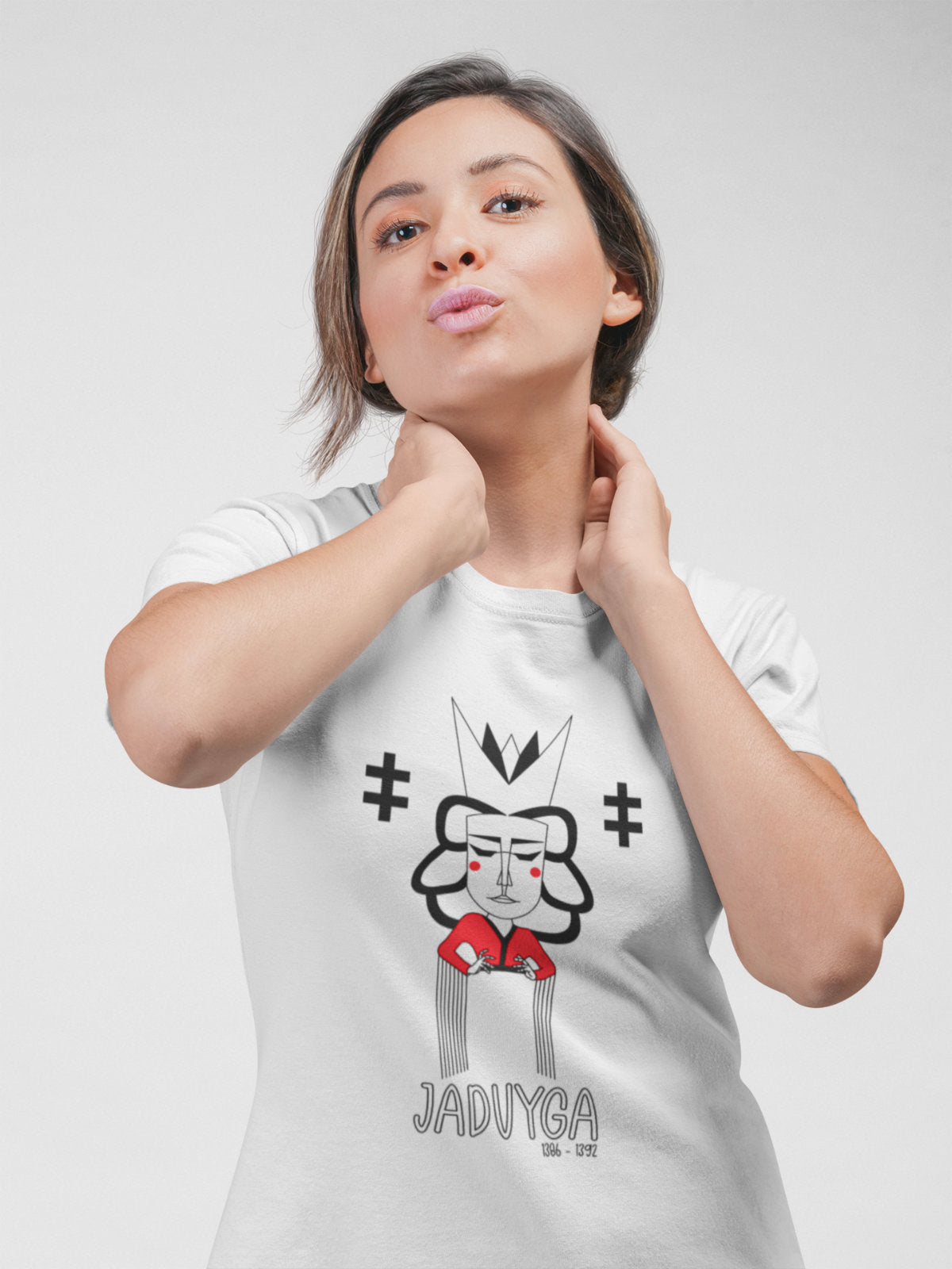 Balti moteriški marškinėliai "LDK KUNIGAIKŠTIENĖ JADVYGA SU UŽRAŠU"
