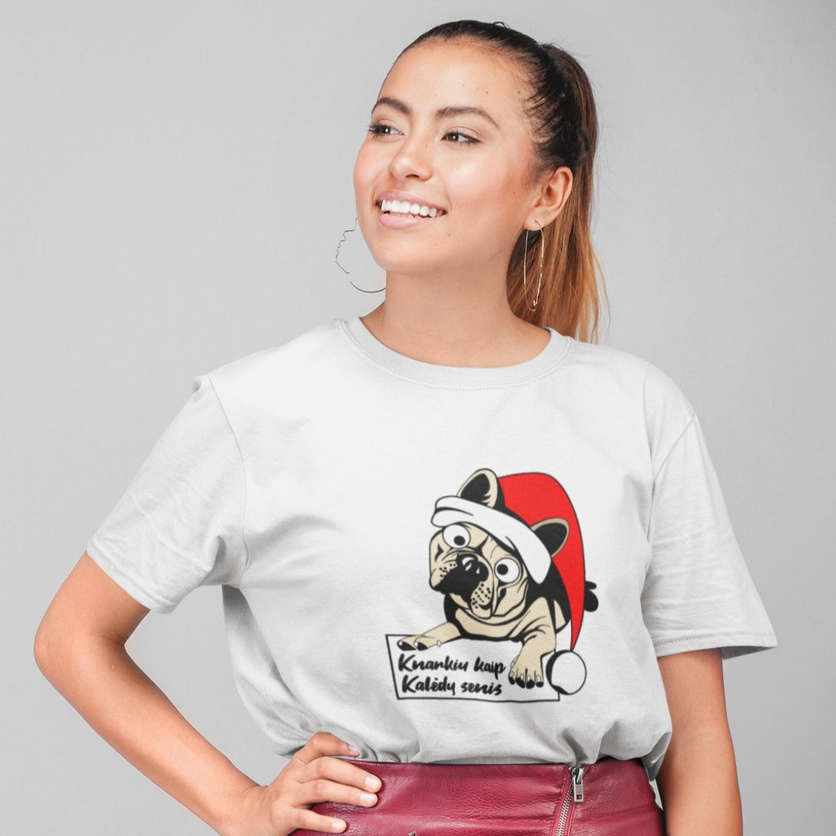Balti UNISEX kalėdiniai marškinėliai "Knarkiu kaip Kalėdų senis"