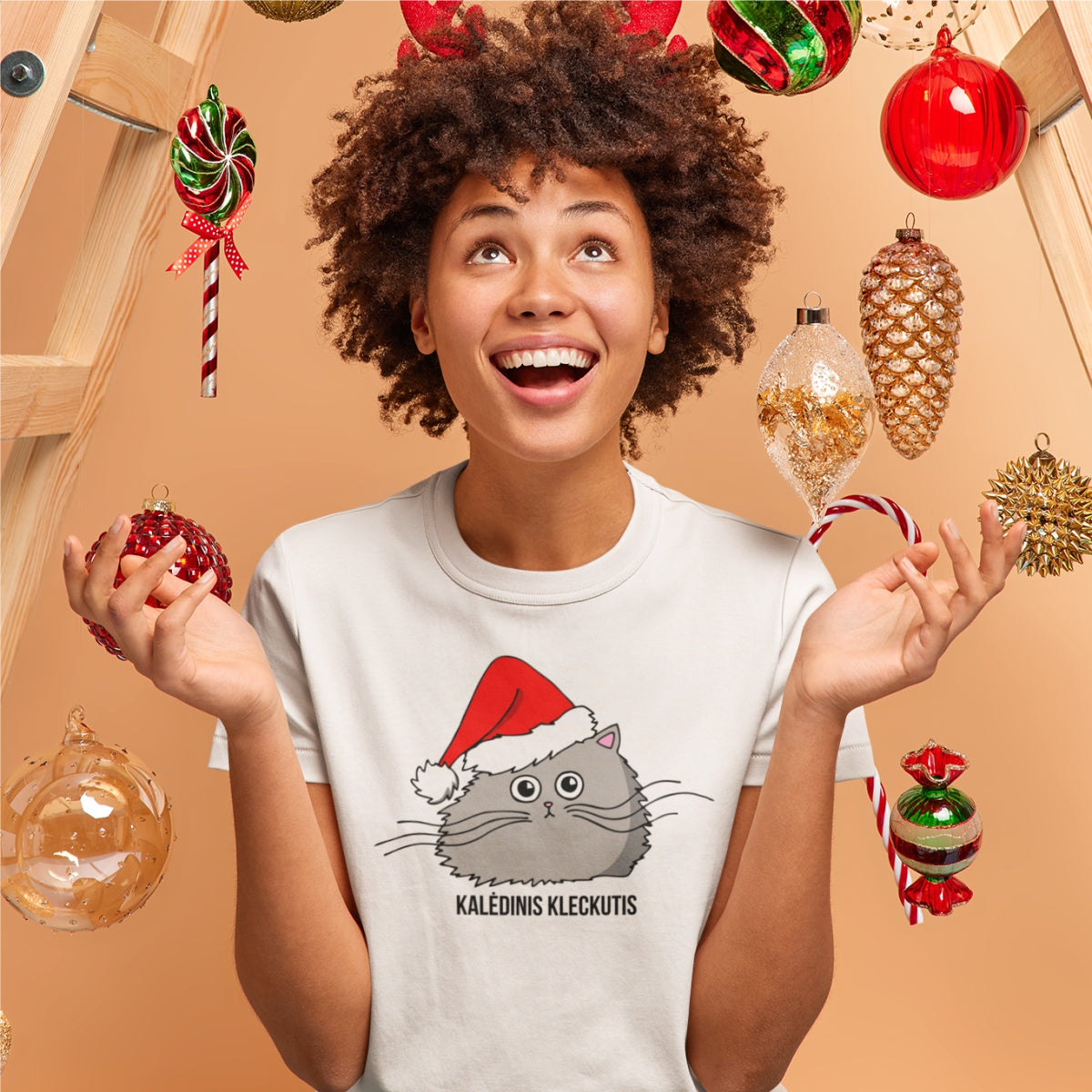Balti unisex marškinėliai "Kalėdinis kleckutis"