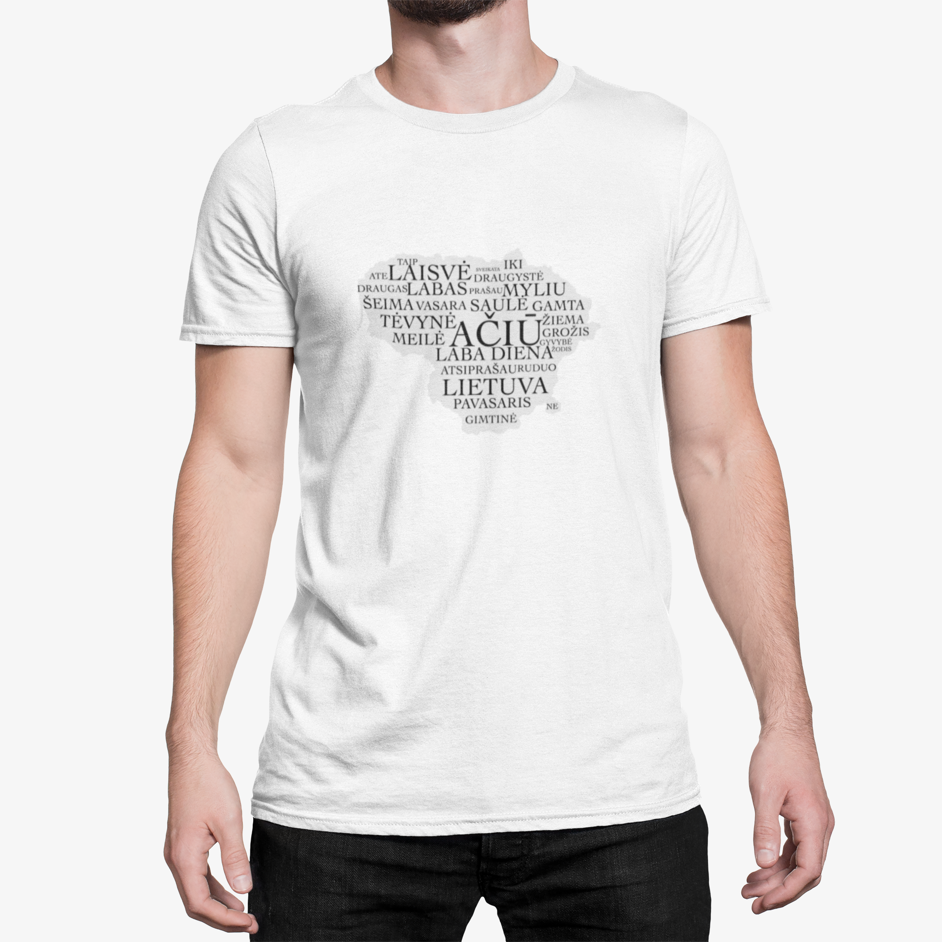 Balti UNISEX marškinėliai "Lietuviški žodžiai"