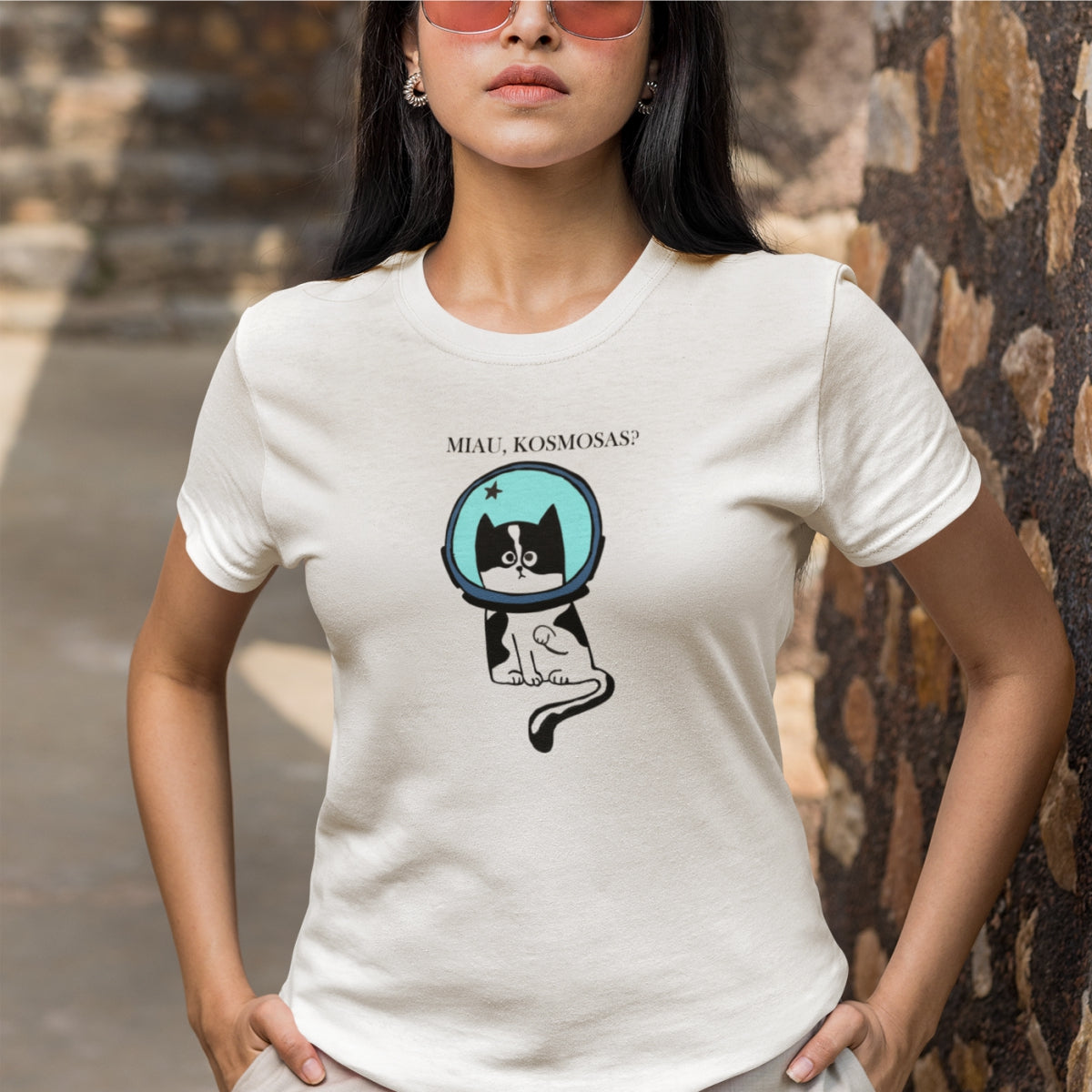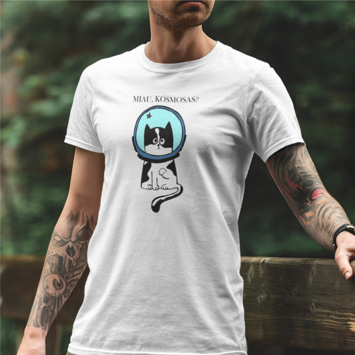 Balti UNISEX marškinėliai "Miau, kosmosas?"