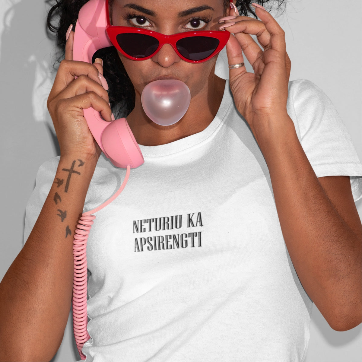 Balti UNISEX marškinėliai "Neturiu ką apsirengti“