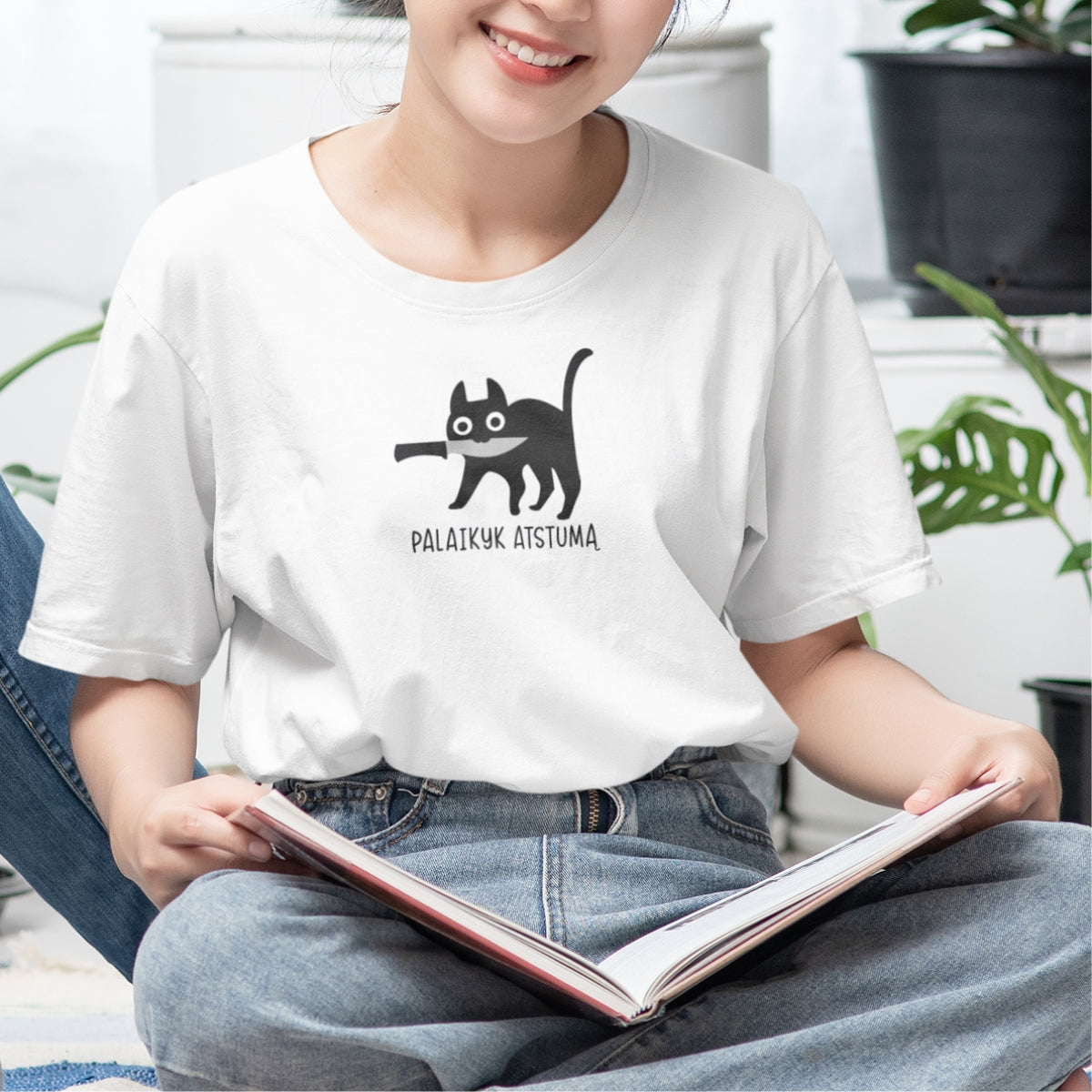 Balti UNISEX marškinėliai "Palaikyk atstumą"