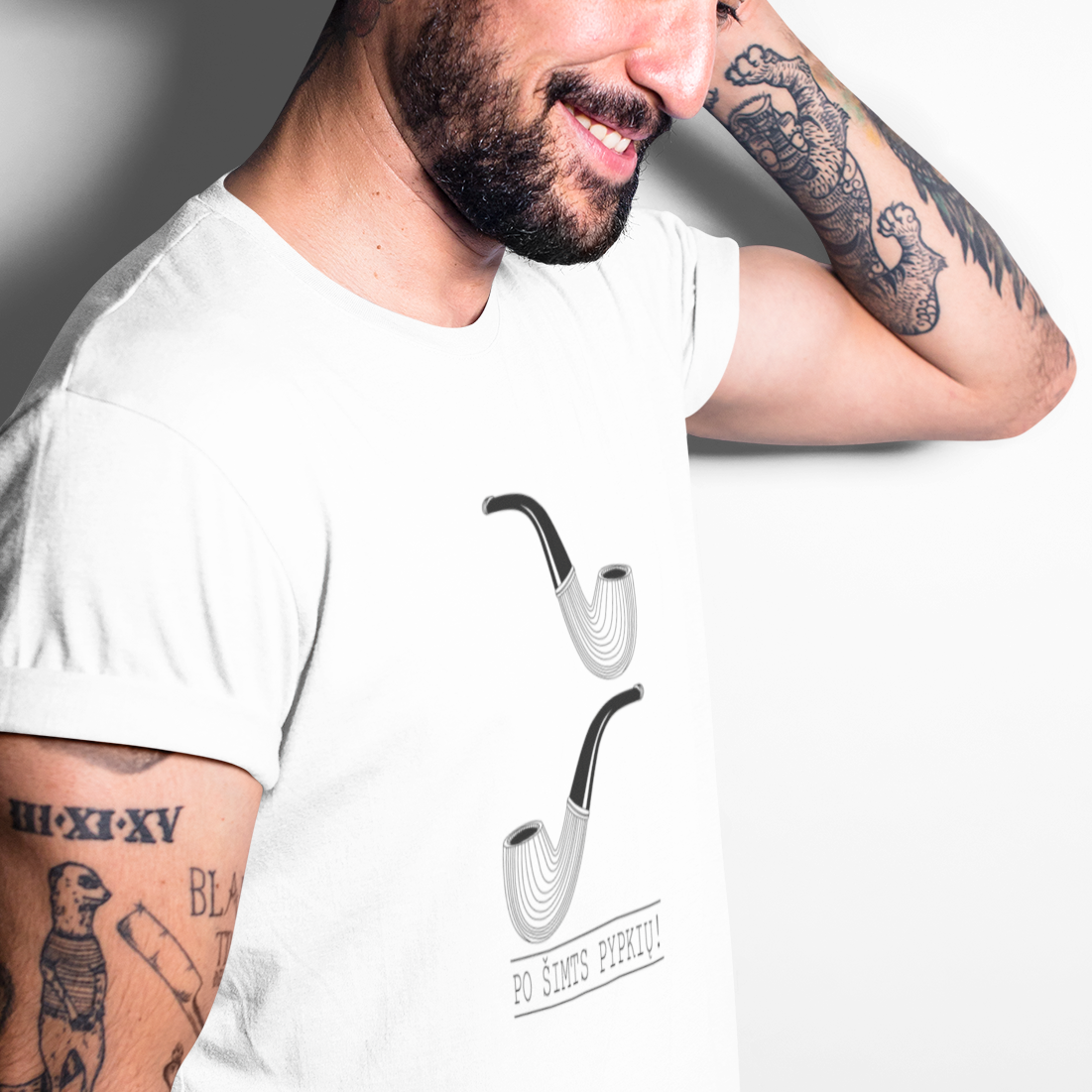 Balti UNISEX marškinėliai "Pypkės“