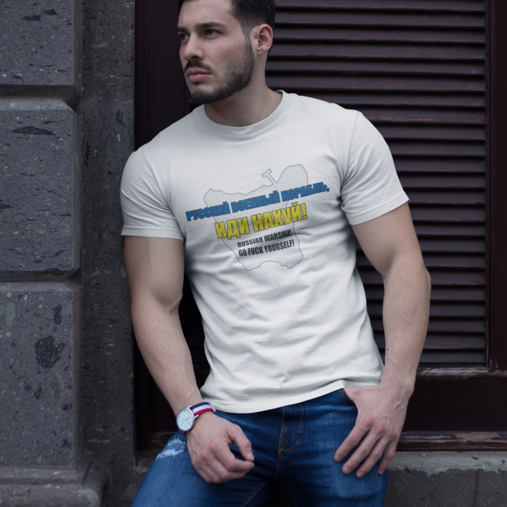 Balti UNISEX marškinėliai - РУССКИЙ ВОЕННЫЙ КОРАБЛЬ, ИДИ НАХУЙ! RUSSIAN WARSHIP, GO FUCK YOURSELF!