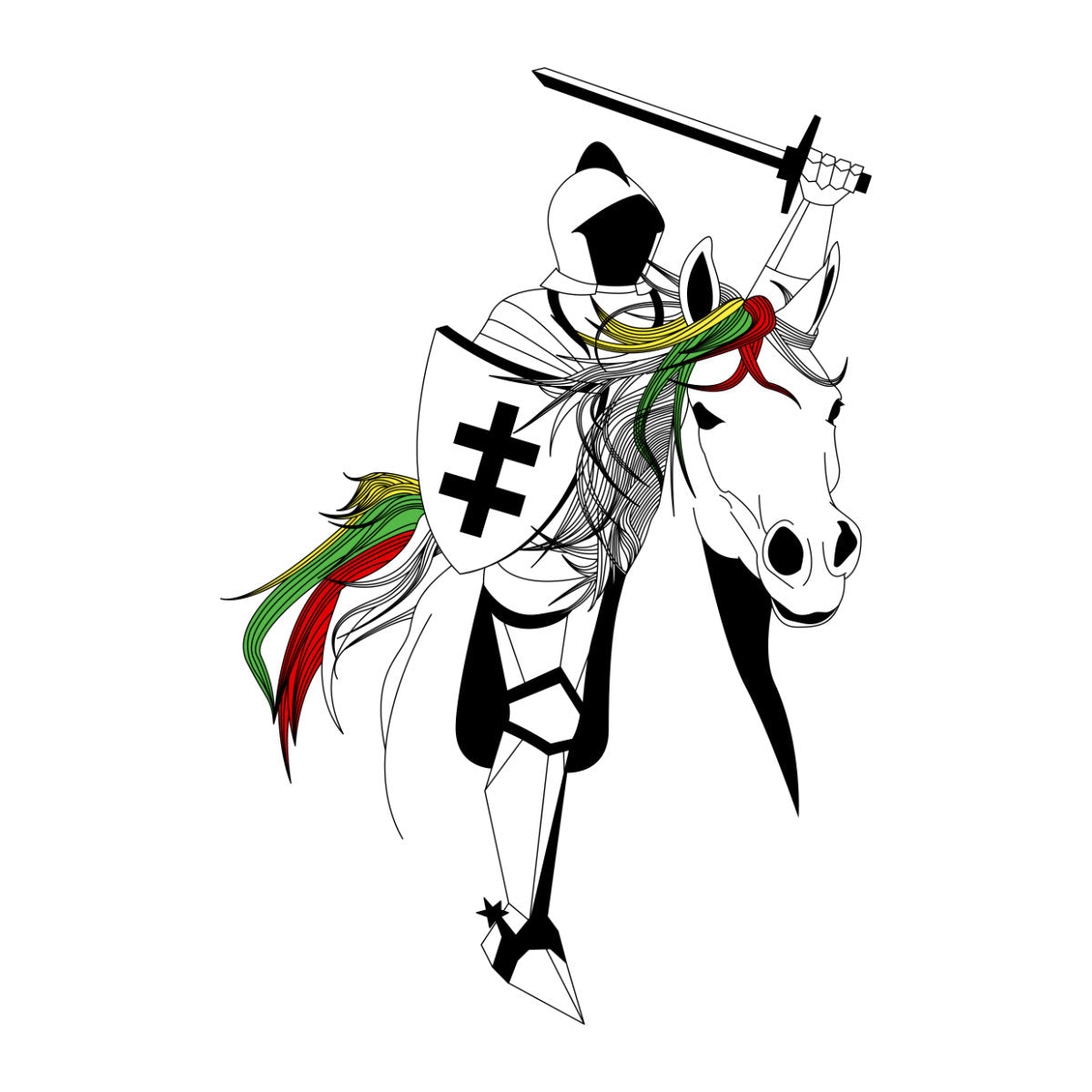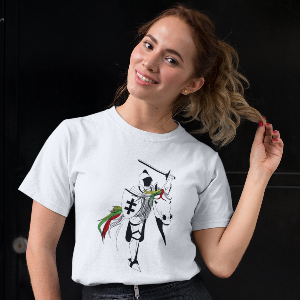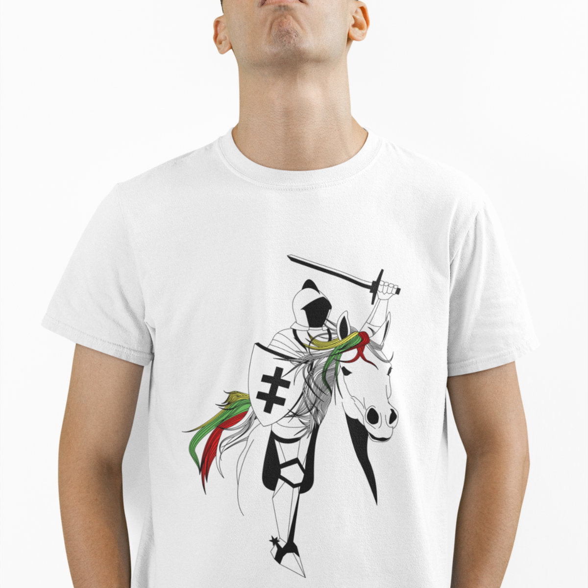 Balti UNISEX marškinėliai "Spalvinga vyčio legenda“