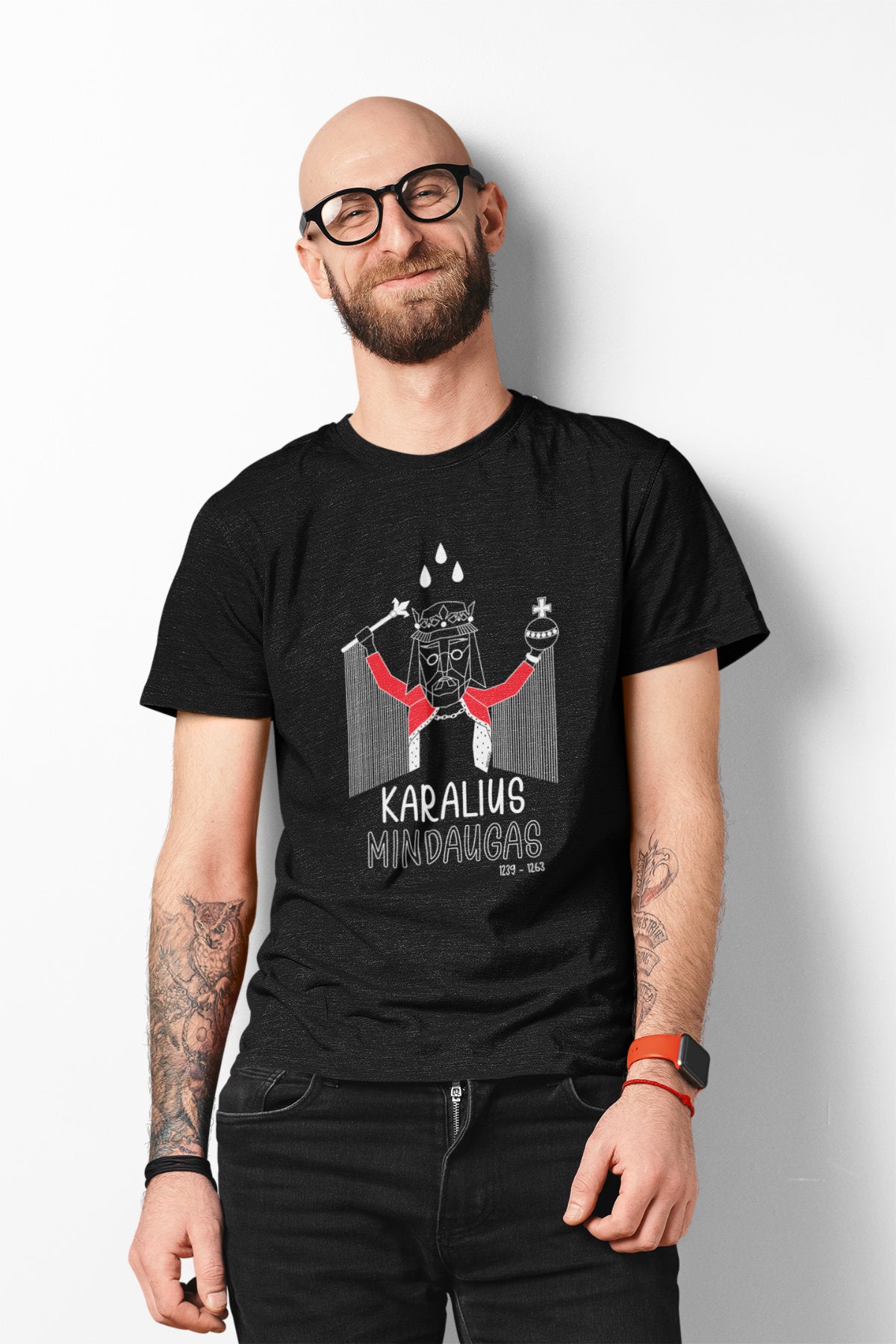 Juodi UNISEX marškinėliai "LDK KARALIUS MINDAUGAS SU UŽRAŠU"