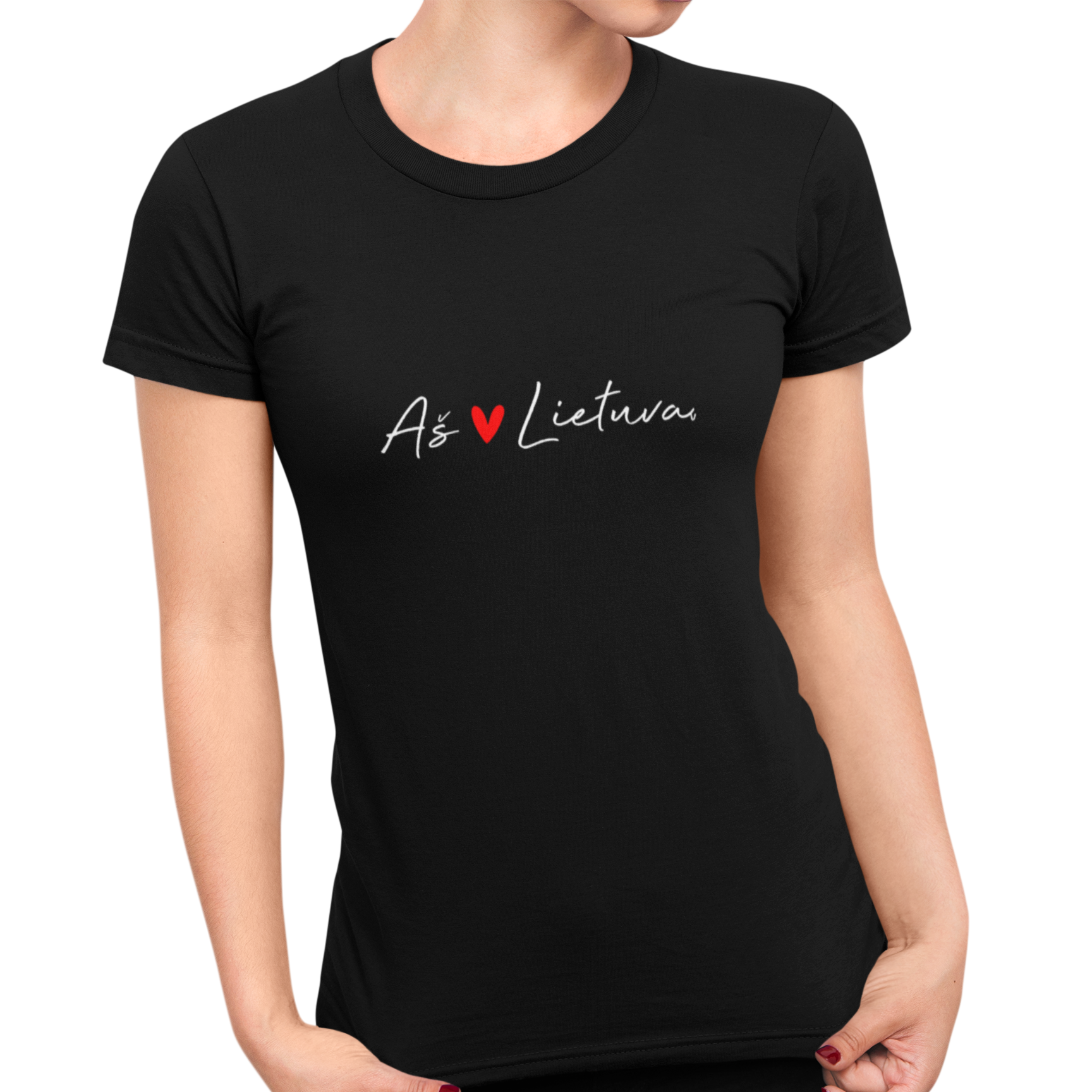 Juodi moteriški marškinėliai "Meilė Lietuvai"