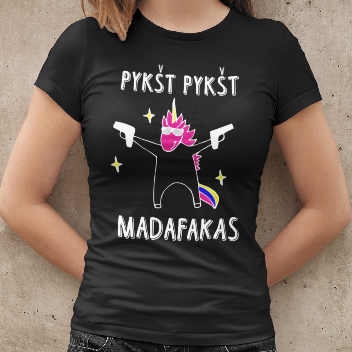 Juodi moteriški marškinėliai "Pykšt pykšt vienaragis"