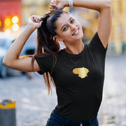 Juodi moteriški marškinėliai su auksiniu marginimu "Auksinė Lietuva"