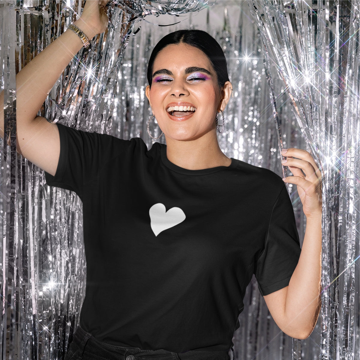 Juodi ploni 150 g. storio UNISEX marškinėliai su lipduku "Širdelė"