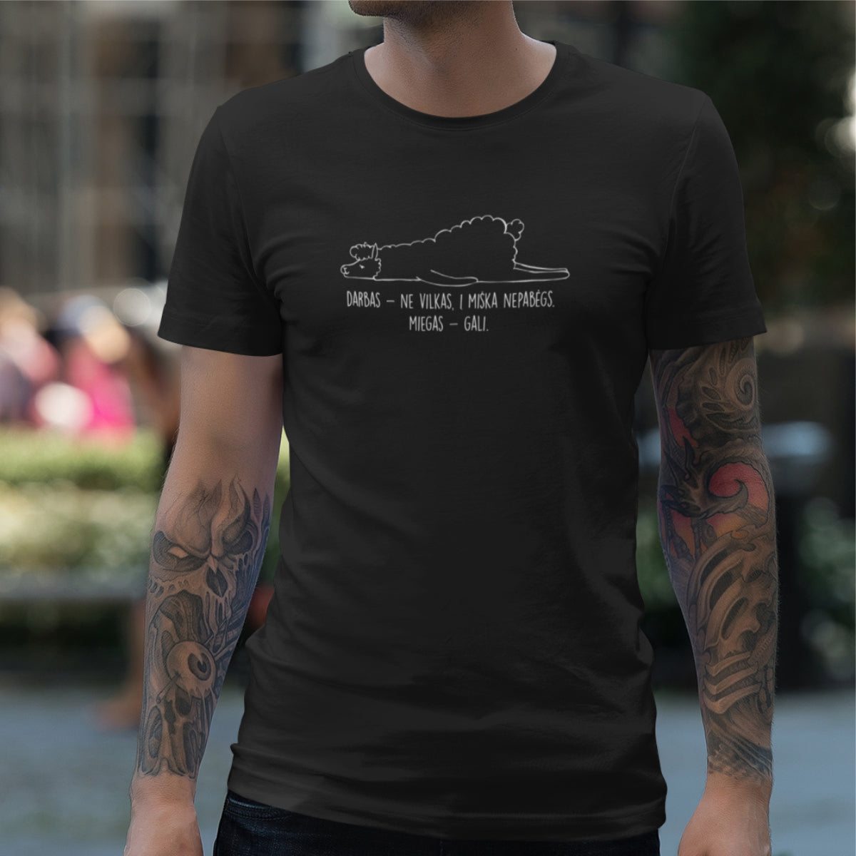 Juodi UNISEX marškinėliai "Darbas ne vilkas"