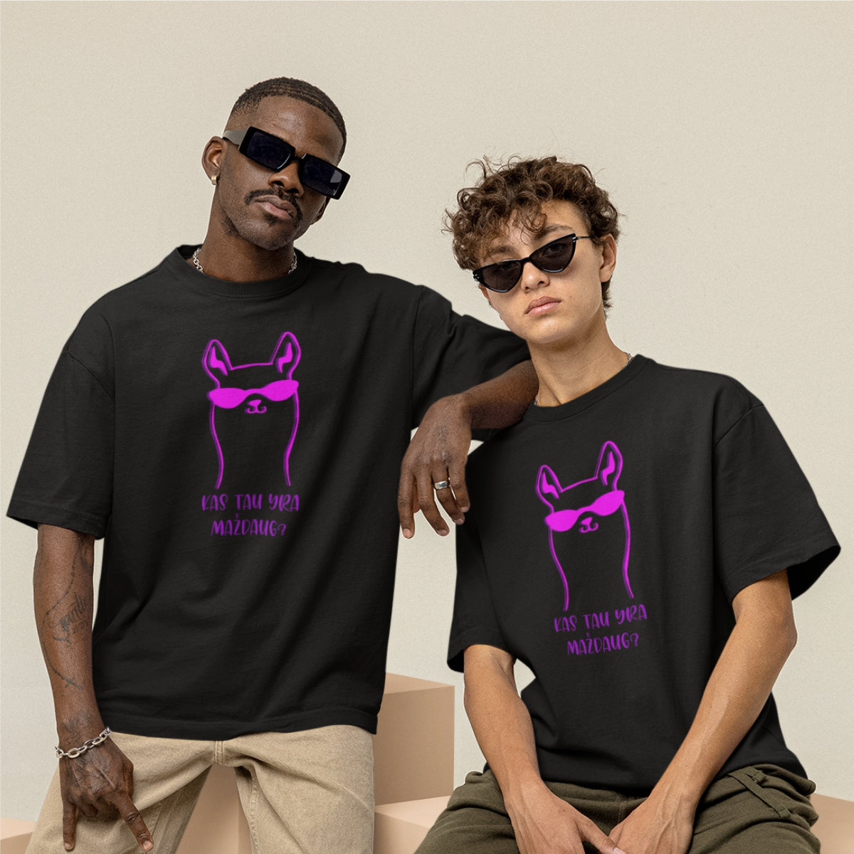 Juodi UNISEX marškinėliai "Kas tau yra maždaug?"
