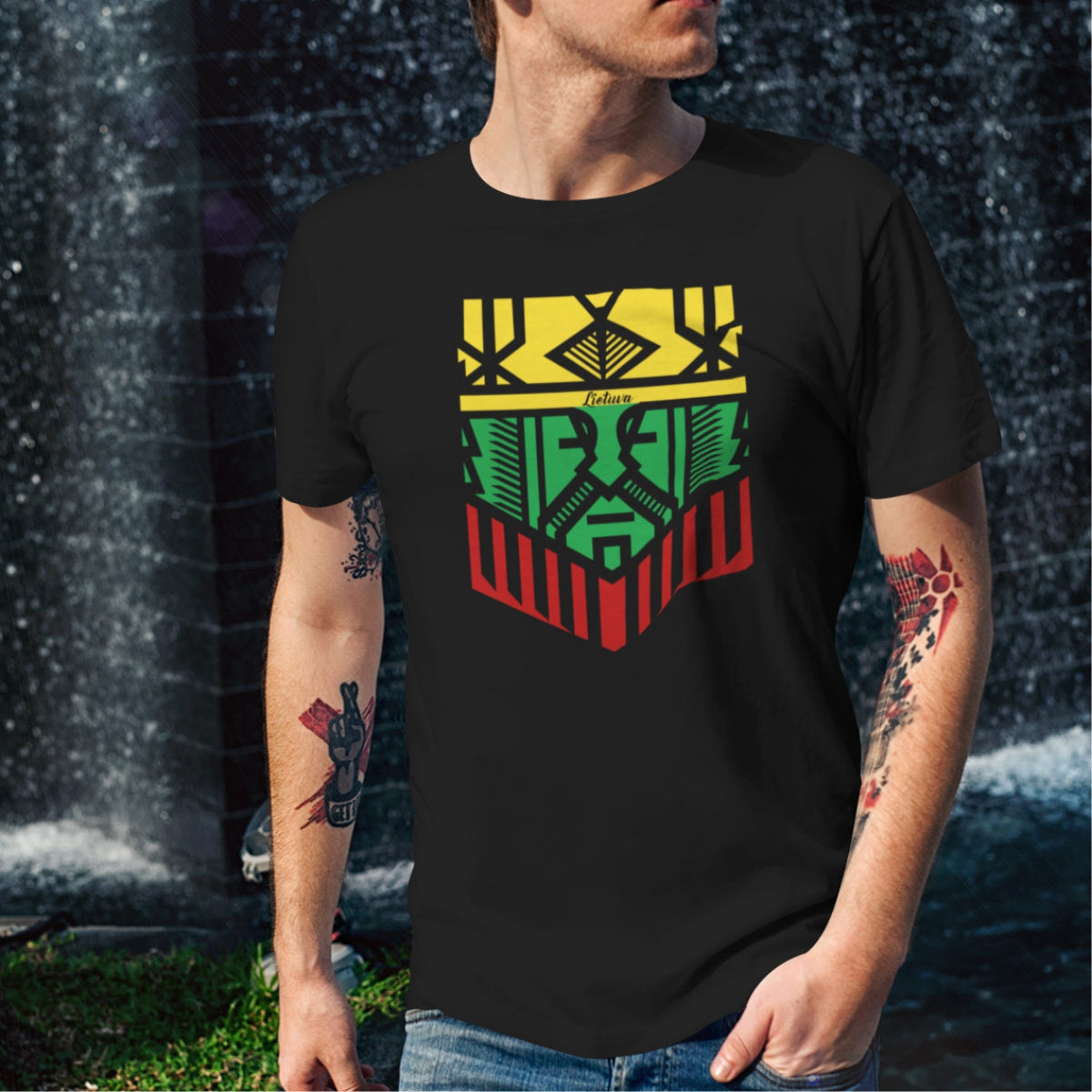 Įspėjame, kad dažų padengimui spalvoti marškinėliai yra impregnuoti specialiu skysčiu, dėl kurio kartais gali matytis skysčio dėmės. Todėl prieš dėvint, rekomenduojame marškinėlius išskalbti.