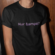 Juodi UNISEX marškinėliai "Kur šampė?"