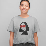 Pilki melanžiniai 100% medvilnės marškinėliai "Juodaplaukė"