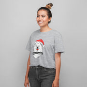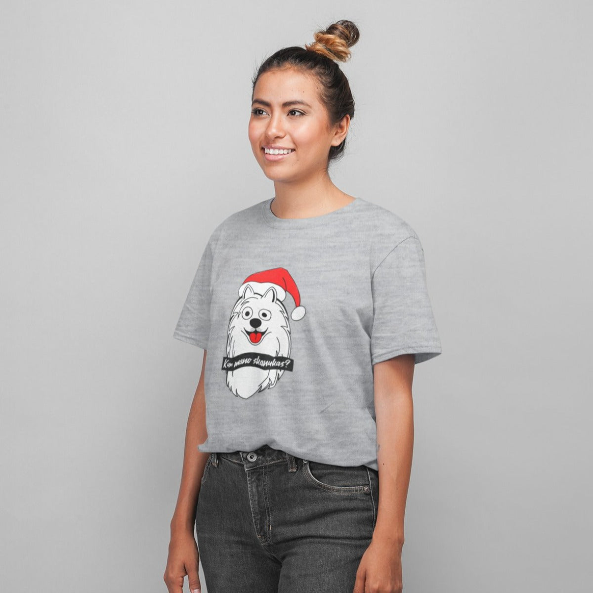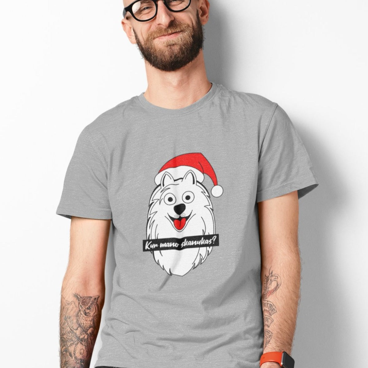 Pilki melanžiniai UNISEX kalėdiniai marškinėliai "Kur mano skanukas"