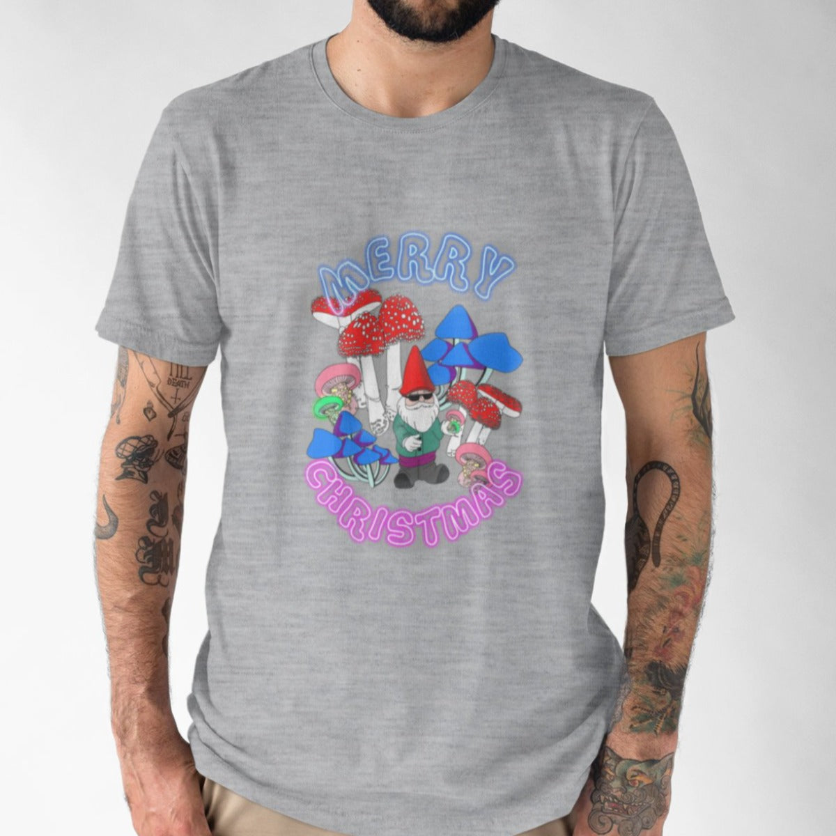 Pilki melanžiniai UNISEX kalėdiniai marškinėliai "Neoninės Kalėdos"