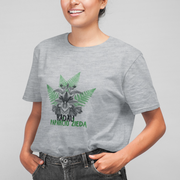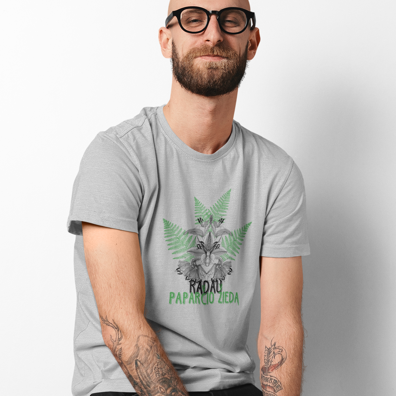 Pilki melanžiniai UNISEX marškinėliai su užrašu "Radau paparčio žiedą"