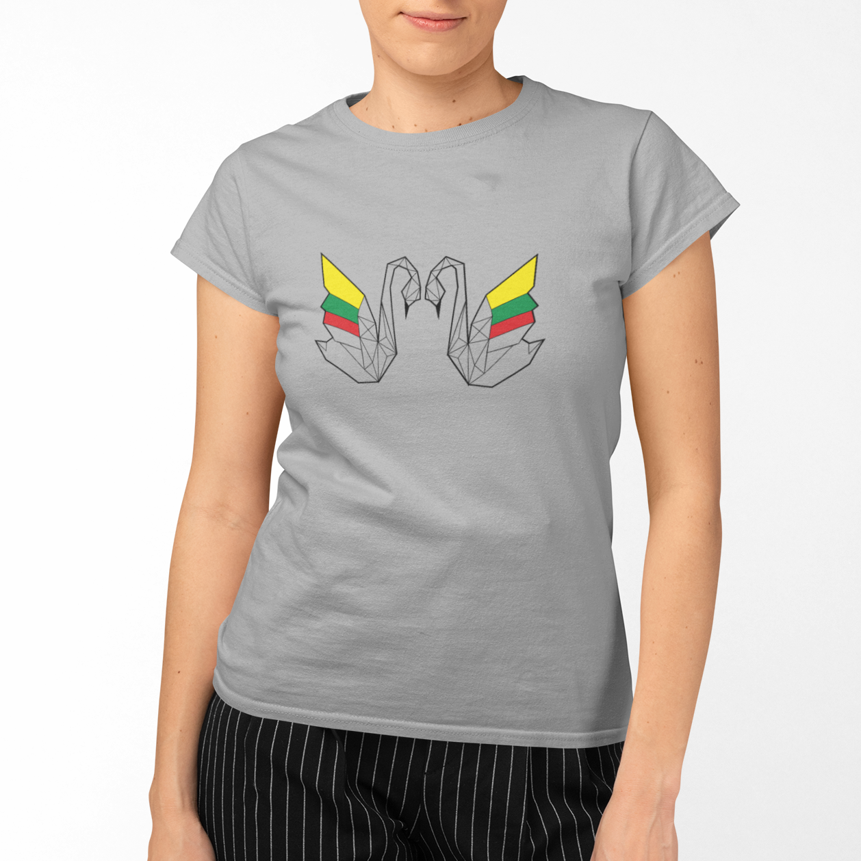 PIlki moteriški marškinėliai "Geometrinės gulbės"