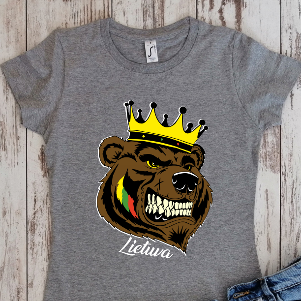 Pilki moteriški marškinėliai "Lietuvos lokys"