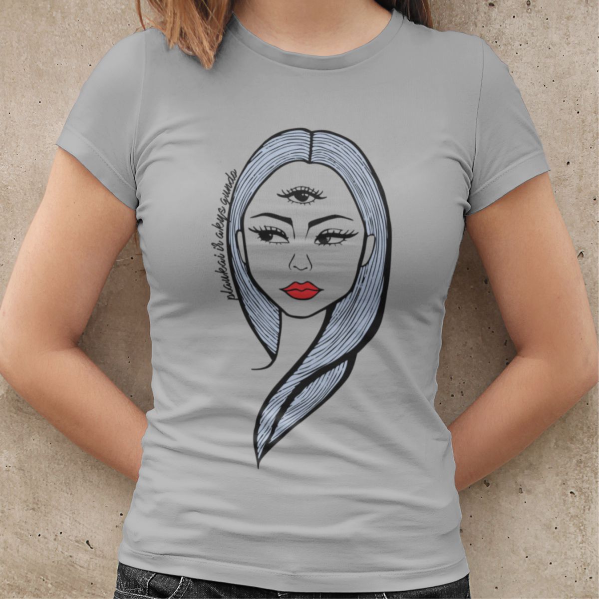 Pilki moteriški marškinėliai "Plaukai ir akys gundo"