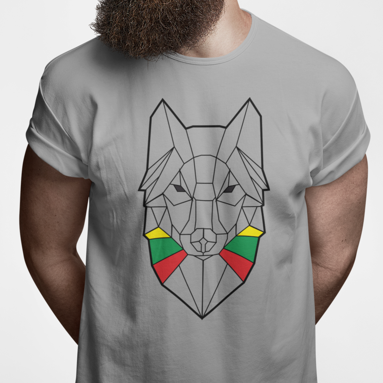 Pilki UNISEX marškinėliai "Geometrinis vilkas"