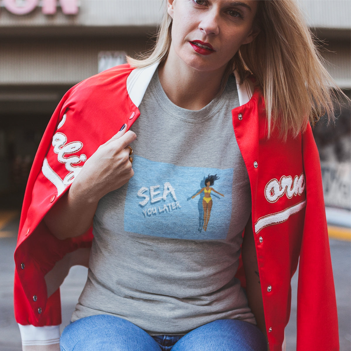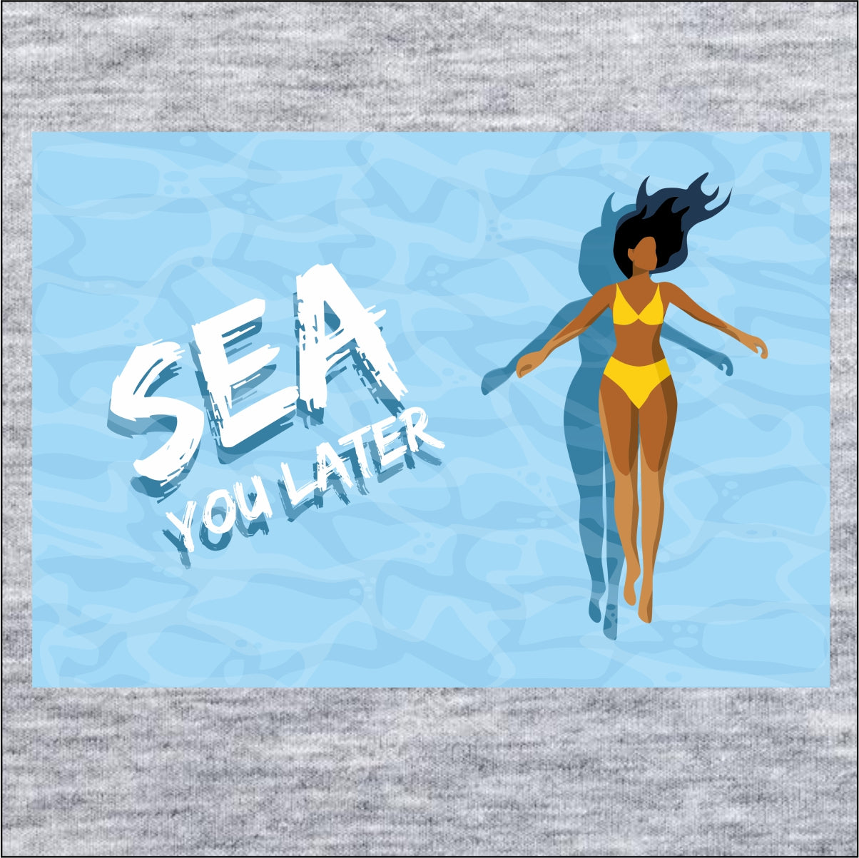 Pilki UNISEX marškinėliai su iliustracija "Sea you later"