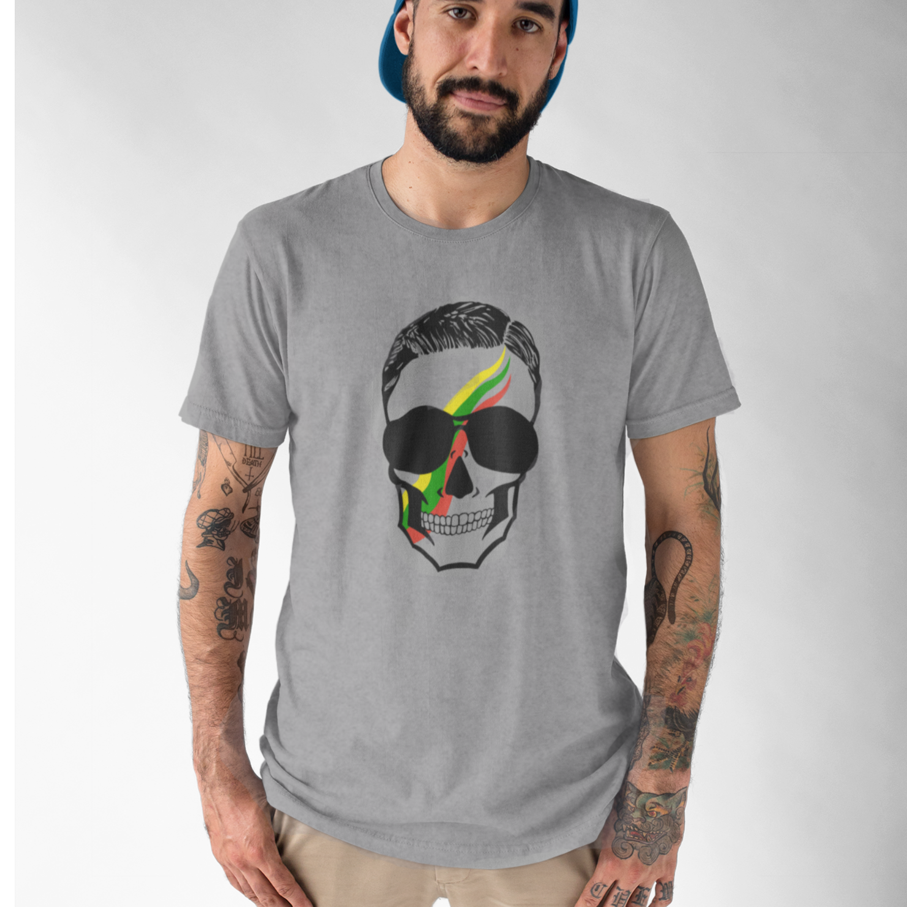 Pilki UNISEX marškinėliai "Vyriška kaukolė"